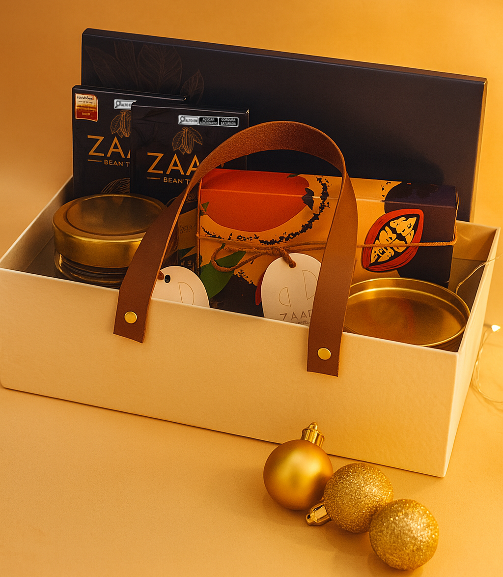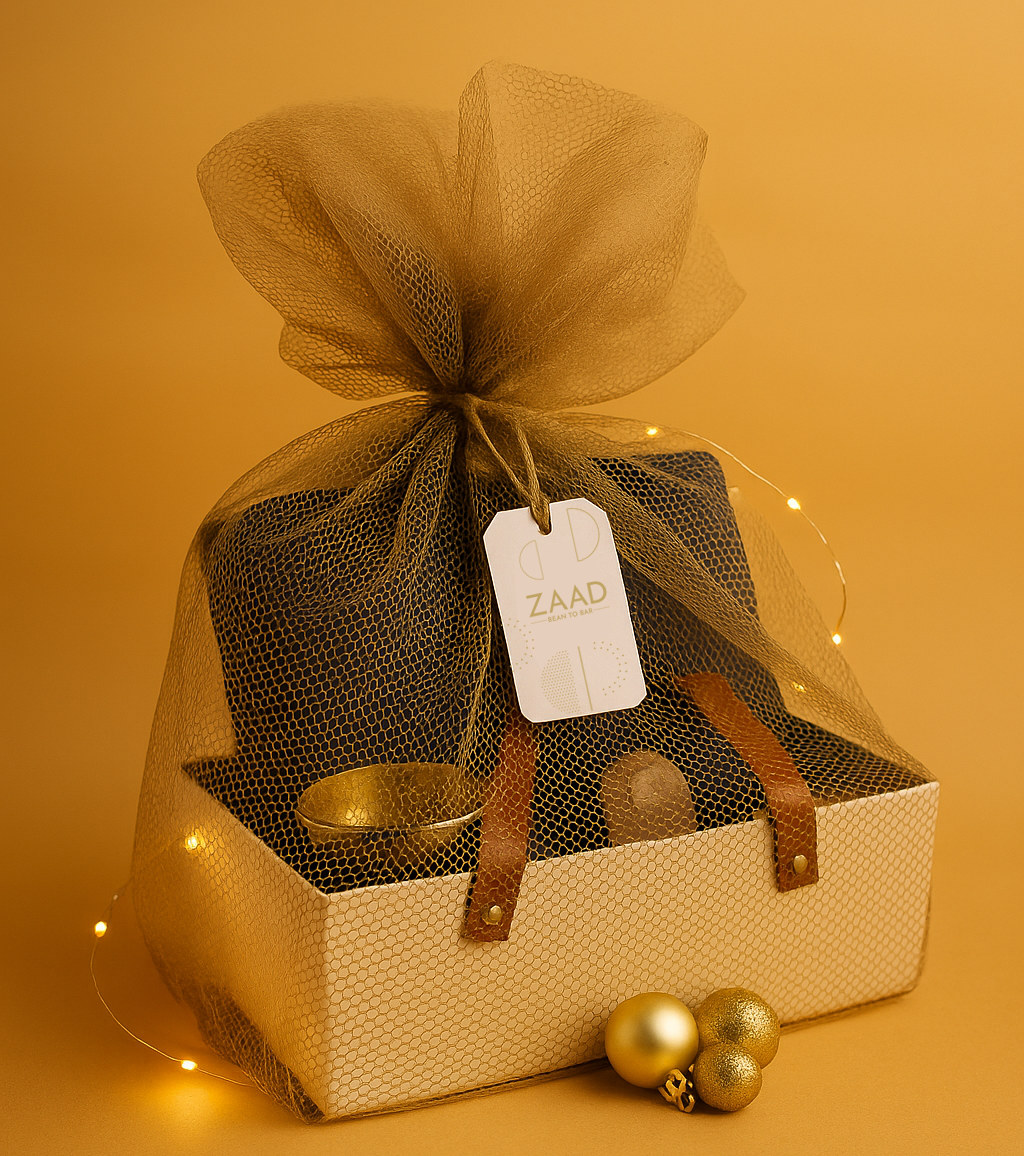 Composição: 01 Caixa Seleção | 01 Bombom Praliné | 01 Pedacinhos Crocantes – Lata | 01 Caixa Trio de Lascas| 02 Barras ZAAD 60g *