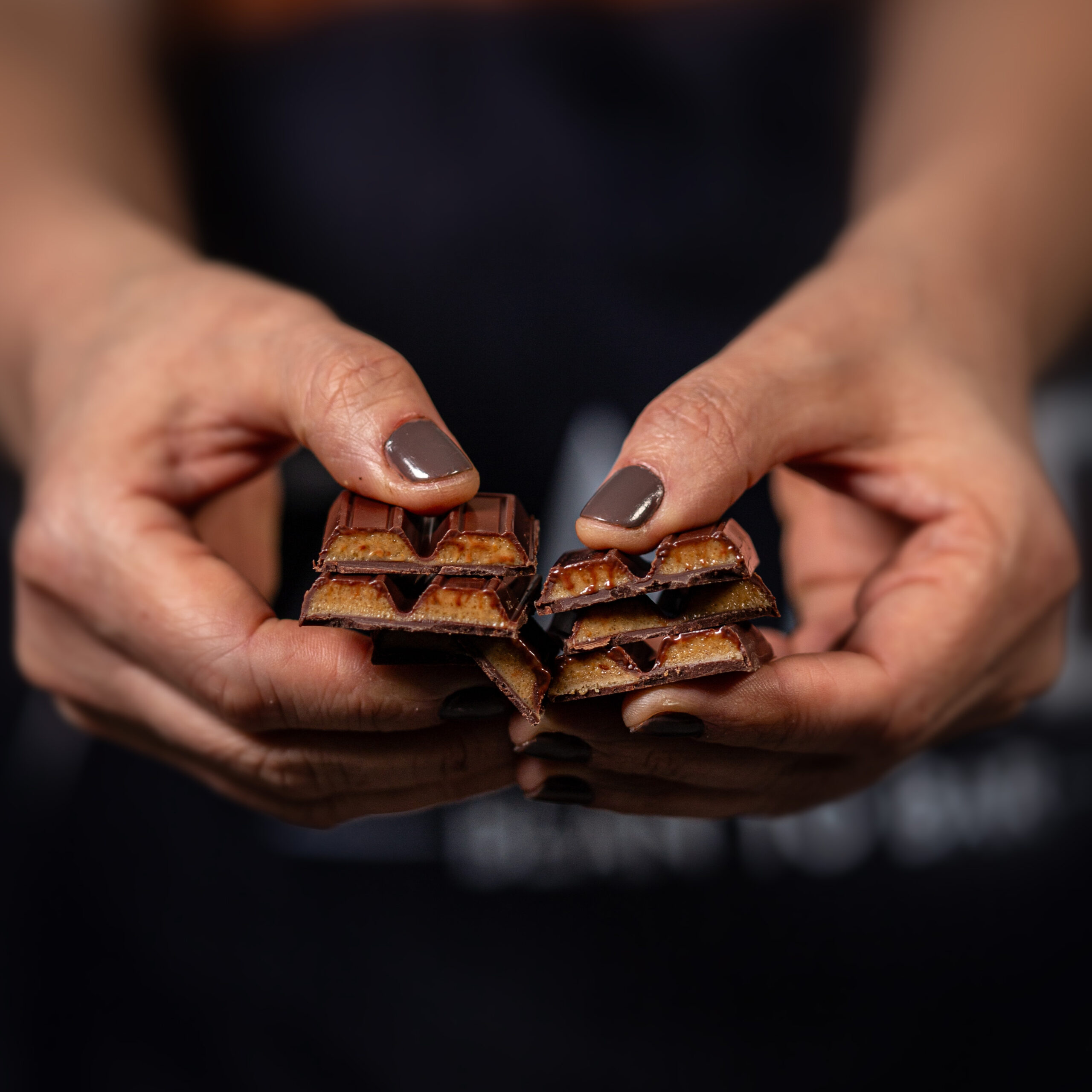 Ingredientes: Cacau, açúcar demerara orgânico, leite em pó integral, manteiga de cacau, castanha de caju, castanha do Pará e castanha de baru.
