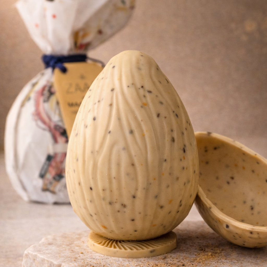Ingredientes: Manteiga de cacau, leite em pó integral, açúcar demerara orgânico, maracujá e manga.